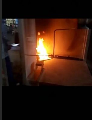 Een steekproef die uit twee verticaal hoekige verticale die vleugels bestaan wordt aan de vlam blootgesteld door de belangrijkste brander bij de bodem van de rechte hoek wordt geproduceerd, wordt de vlam geproduceerd door de verbranding van propaangas, gaat het propaangas door de zandbakbrander over en veroorzaakt (30,7 ± 2,0) kW hitteoutput.