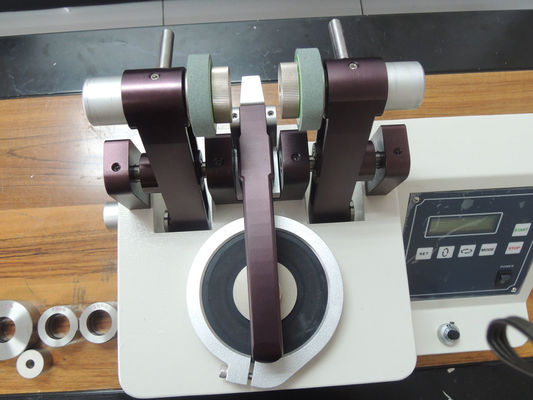 Taber Abrasion Tester (Taber Abraser) maakt gebruik van het X-patroon van slijtage geproduceerd door een rotatie van een paar slijpwielen.exemplarenhouders, slijpwielen, wielenrefacer en vacuümeenheid.