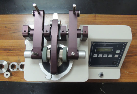 Taber Abrasion Machine. Om de slijtvastheid te bepalen van allerlei soorten structuren, waaronder stoffen, leer en rubber, papier, metalen, verven, geplateerde oppervlakken, gecoate materialen, glas, enz.