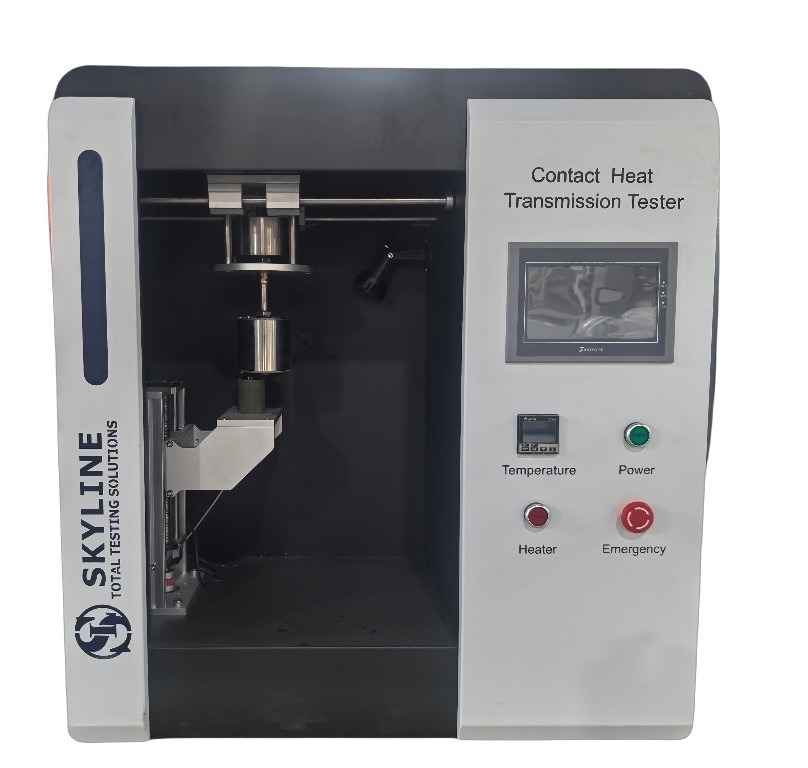 Contact warmteoverdracht tester is professioneel ontworpen om de contact warmteoverdracht van beschermende kleding, handbeschermers en de samenstellende materialen die bedoeld zijn om te beschermen tegen hoge contacttemperaturen te bepalen. De tester bestaat uit een verwarmingscilinder, een monsterhouderframe en een calorimeter.