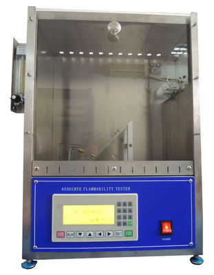 45 Graad wordt gebruikt om naleving te evalueren van fire-retardant producten van fire-retardant prestatienormen volgens de verbrandingsmethode, en meet verbrandingskenmerken zoals na Gloed en na Vlam van testspecimen die bij een 45 graadhoek wordt geïnstalleerd.