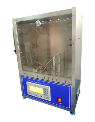 Om de het branden kenmerken van textiel in de gecontroleerde omstandigheden te bepalen. Het kabinet van de roestvrij staaltest met het paneel van de glasobservatie dat van automatische timing van vlam wordt voorzien die in 0,1 tweede toename van ontsteking wordt uitgespreid. Het borstelen van Apparaat met inbegrip van Extra Nylon Borstel.