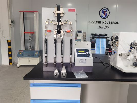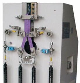 Het ritssluitingsmeetapparaat, om de weerstand tegen wisselwerking van ritssluiting (diabevestigingsmiddel) te bepalen wordt, het testspecimen onderworpen aan een gespecificeerd aantal cyclische verrichtingen terwijl onder zij en longitudinale spanning.