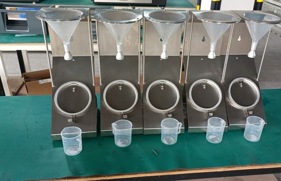 Het de Classificatiemeetapparaat van de stoffennevel bestaat uit een metaalkader die gedistilleerd water toelaten om door een pijp op een testspecimen at45° en 150mm onder de pijp worden bespoten.